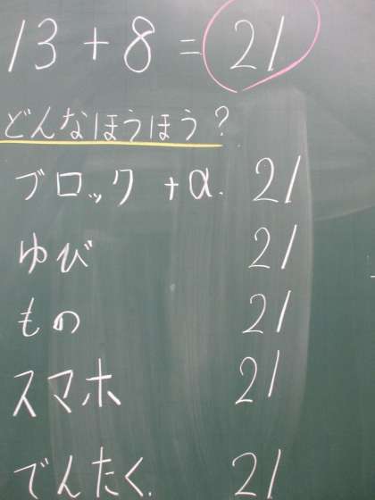 今日は2・3年生で繰り上がりの足し算に挑戦しました。