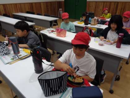 嬉しそうにお弁当を開ける子どもたち、「わぁ〜美味しそう!」とみんな笑顔でお弁当を食べていました。いろいろとご準備ありがとうございました。