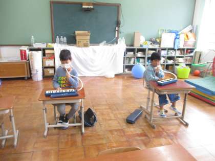 今日は2名で鍵盤ハーモニカの特訓をしました。