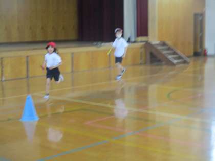 今日の自立は短距離走とリレー、風船バレーをしました。