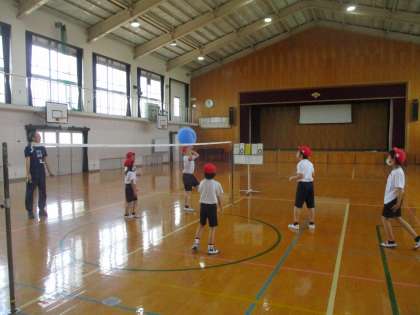 また、風船バレーでは、ネットを挟んでチーム戦で戦いました。