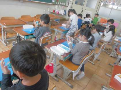 授業の後半には、友だちが作った作品を見て感想を言い合いました。