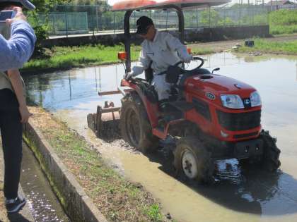今日は貴重な代かきをしている様子を見学させてもらいました。