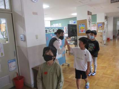 昨年度、エマ先生から出してもらっていた英語の歌を披露したり、今学習している色の名前を使って外で色おにをしたり、一緒に楽しい活動をすることができました。