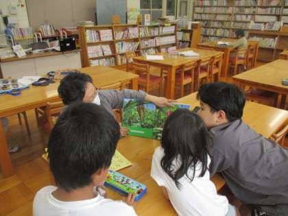 今日の図書の時間には、またまた図書館司書の山本先生からの読み聞かせの時間がありました。