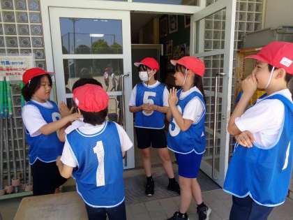 リレーでのタイムを伸ばすためにはどうしたらいいか、しっかり作戦タイムに話し合っていました。