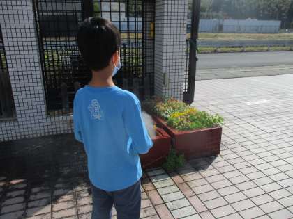 今日の委員会活動の際、昨年度から観察していたあの植物が青々しくなっていることを子どもが発見しました。