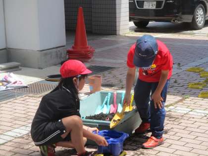 今日の3年生の理科では、ヒマワリの種とホウセンカの種を植えました。