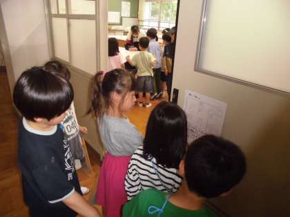 理科室や音楽室をのぞいたり、いろりの間に入ったりして、