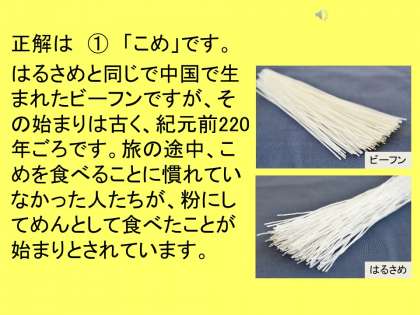 春雨についての食材クイズもありました。