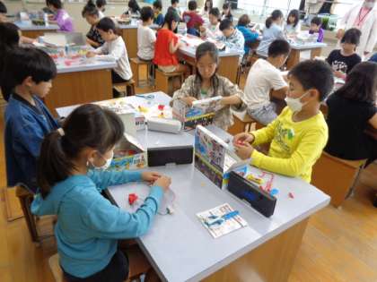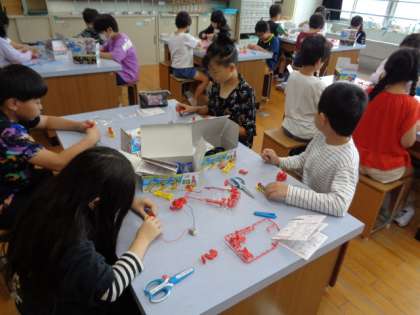 考えながら、友達とも協力しながら回路ができ上がり、モーターが回るととても嬉しそうでした。