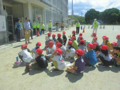 教頭先生や警察の方のお話を静かに聞きながら、自転車の乗り方について学習しました。
