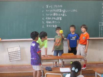 中間休みに「マジック係」さんがマジックを披露してくれました。5秒で箱になるマジック・一瞬で人の手に輪ゴムが移るマジックを披露してくれました。とても上手にできて、見ているみんなも驚いていました。