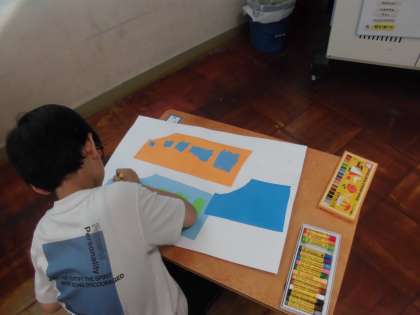 先日、紙を破いて貼った作品に絵をつけ足しました。
