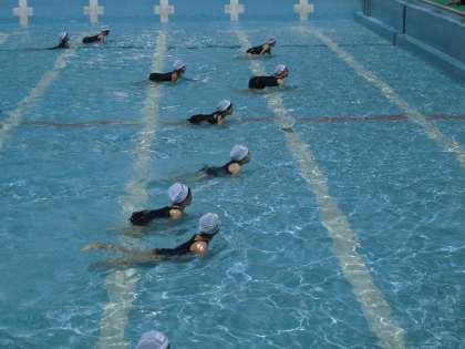 着替え、体操、並び方、腰洗い、シャワー、入水・・・