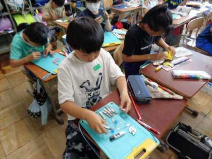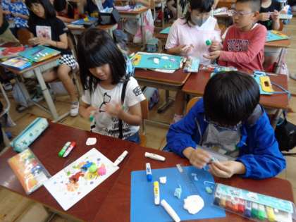 図工でまぼろしの花の学習をしています。