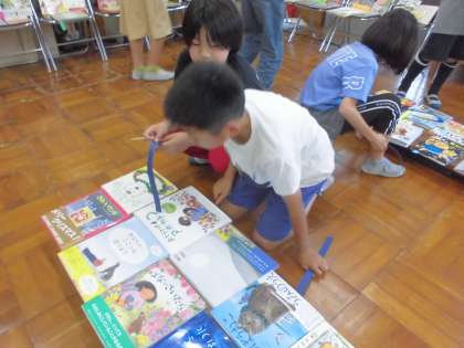 選書会がありました。自分たちが選んだ本が図書室に入ってくるので、どんな本なのか中身を見て決めていました。どんな本が入ってくるのか楽しみです。