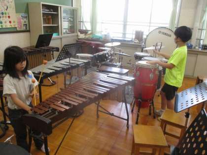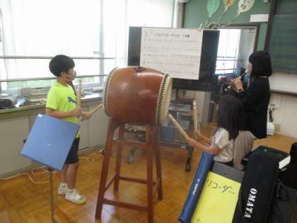 今日の音楽は交流の関係で2人で行いました。音楽室にあるいろいろな楽器や和太鼓を使ってリズム遊びをしました。先生のリコーダーや音楽に合わせての合奏。楽しい時間になりました。