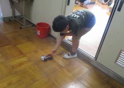 今日の4年生の理科では、「電気のはたらき」の学習で、乾電池を使った動く車を走らせました。広い廊下に出て、いろいろ試しながら楽しく活動することができました。