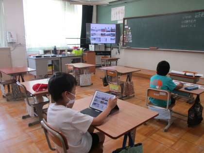 今日は5年生の子に教えてもらいながら、事前学習を行いました。