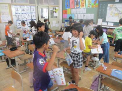 外国語の「How many?」の学習で、友だちとじゃんけんをして勝ったか負けたかあいこだったかを記録して、その後数を数えるという活動をしました。みんな積極的に友だちに声をかけて楽しく活動ができました。