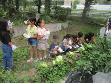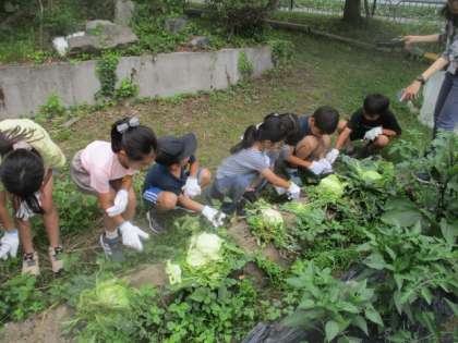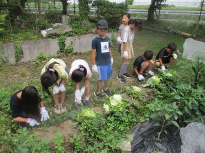 理科の学習で育てているキャベツ畑の雑草抜きしました。気温が高くなっているからか、たくさん雑草がありました。がんばって抜いてくれました。