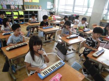 初めて鍵盤ハーモニカを使いました。