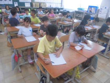 今日は、2年生になって初めての水書の学習でした。