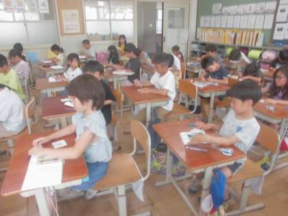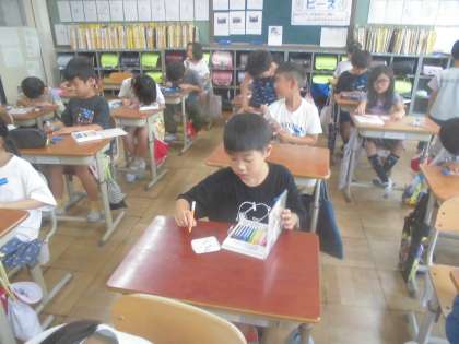2年生 たてわりワッペンの色塗り