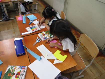 切ってみる子もいれば,扉を作ってみる子もいたりと,思い思いの作品を作ることができました。