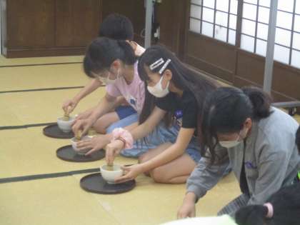 28日(金)2回目の茶道体験がありました。今回は、自分でお茶をたてて飲みます。