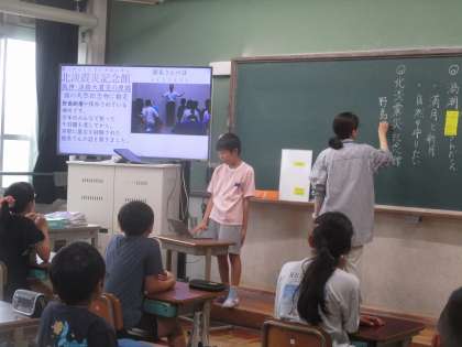 5月に行った修学旅行で学んだことを各クラスに行ってスピーチしました。集団生活をして、わかったこと・大切なことや淡路島の魅力や自然に触れて感動したことなどをパワーポイントにまとめて話しました。どのクラスでもしっかりと話を聞いてくれて、質問や感想を交流できてとてもよかったです。