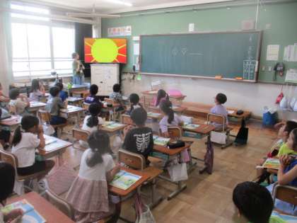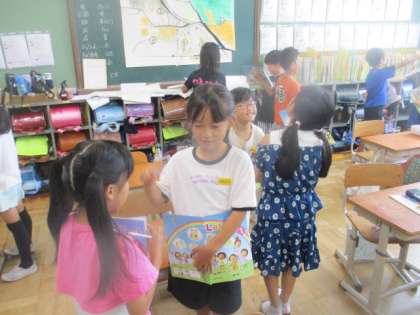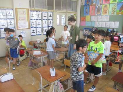 この日は、ALTの先生が来てくれました。みんな大喜びで、活発に活動して楽しんでいました。
