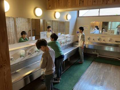 朝6時に起床した子どもたちは、顔を洗ったり、歯をみがいたり…身支度をしています。
