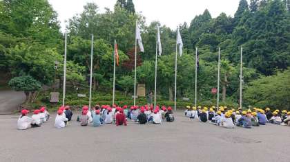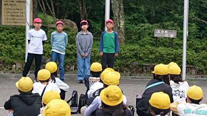 山の家の夜の様子の話を伺ったり、一緒に宿泊しているそれぞれの小学校について紹介し合ったりしました。