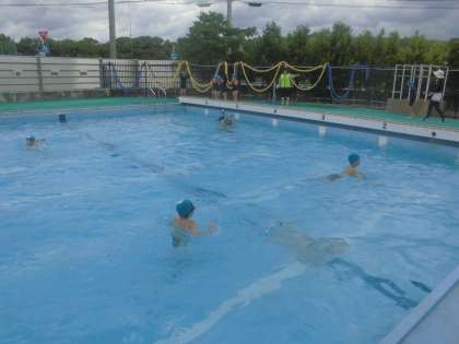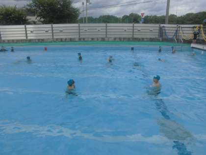その後は、実際にプールで大の字浮きをする練習をしました。