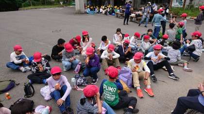 山の家までもどってきました。約1時間30分のコース。ハイキング後のオレンジジュースは、格別でした♪