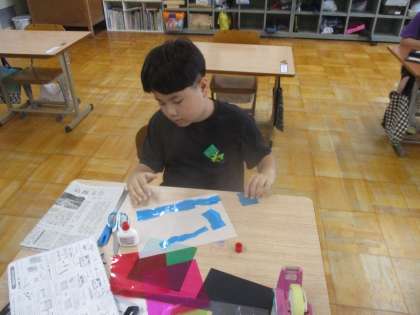 今日の図工ではそれぞれの学年で違う課題を行いました。2年生は「絵の具を使って」3年生は「粘土遊び」4年生は「光のさしこむ絵」みんな楽しく取り組んでいました。