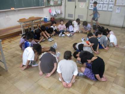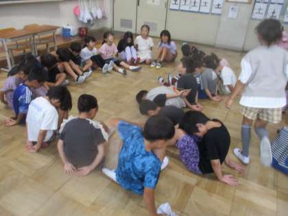 この日は、天気が悪く教室の中でクラス遊び「ハンカチ落とし」をしました。ハンカチ落としが初めての人もいたようですが、みんな楽しそうに遊んでいました。