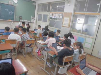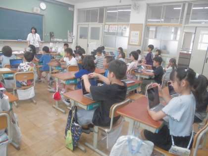 水曜日の音楽は、けんばんハーモニカ・・・ではなく、タブレットを使った学習でした。