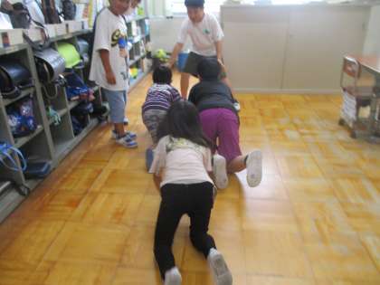 休み時間には、よく分からないけれど、ハイハイレースが始まっていました。