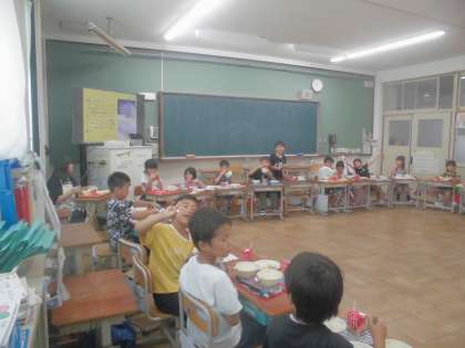 学びの先生との時間を惜しみながらも、友だちともたくさん喋って、にっこにこの給食時間でした。
