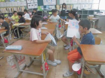 夏休みの思い出を書いてきた絵日記をみんなで交流しました。