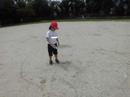 水を入れて遠くまで飛ばしたり、地面にお絵かきをしたり、噴水のように上に出したり・・・