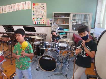 今日の音楽の時間は、それぞれの楽器を決めて合奏練習をしました。