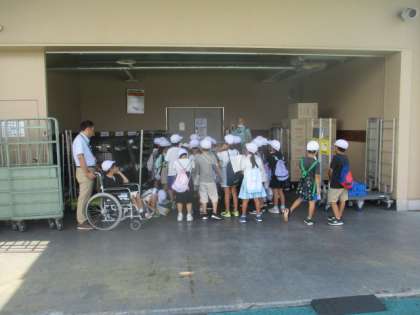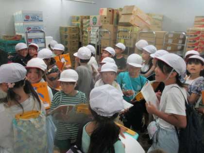 9月6日(金)に「スーパーマツモト」に社会見学に行きました。スーパーの人たちは、たくさんのお客さんに来てもらえるために、どんな工夫をしているのかを見つけに行きました。たくさんの工夫が見つけられたようで、ノートにたくさん書いていました。普段は見ることができないバックヤードも見せていただき、みんなとても楽しそうに見学をしていました。