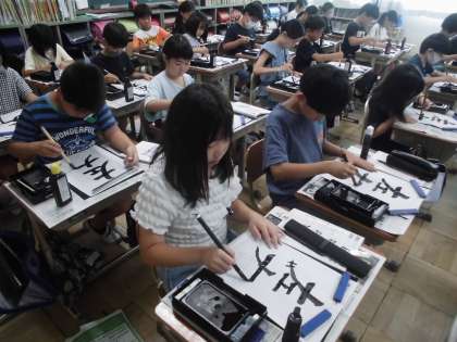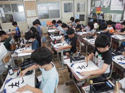 「左」の横画は短めに、「右」の横画は長めに、など気をつけることがたくさんありました。どの子も真剣に取り組んでいました。