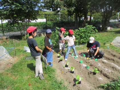 今日のチャレンジタイムで秋冬野菜の苗を植えました。