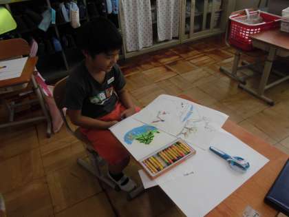 「お直し屋さんに出てきたオバケやカエル、小人さんたちも描こう。」