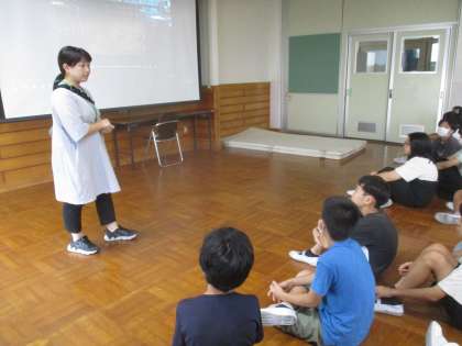 今日は運動会に向けてガイダンスを行いました。一人技や二人技、三人技、フラッグの取組をどんな風に進めていこうかみんなで課題もふまえつつ話し合いました。次の体育からは、本格的な練習が始まりますので、水分の準備等、よろしくお願いします。